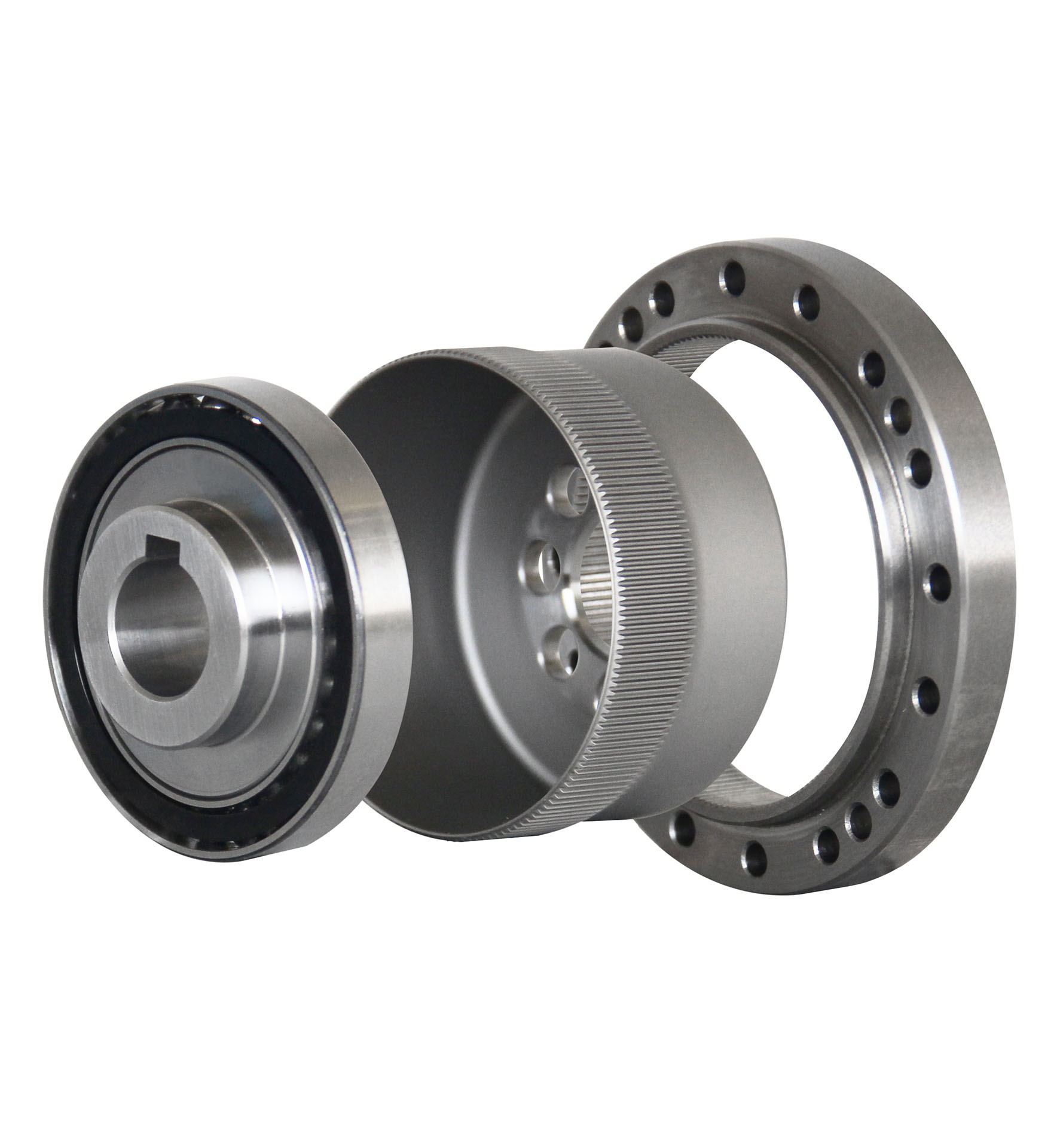 Der Komponenten-Einbausatz enthält das Kernstück des Wellgetriebes ohne weitere Komponenten wie z.B. zusätzliche Lagerung, Gehäuse oder spezielle Eingangs- oder Ausgangskonfigurationen.