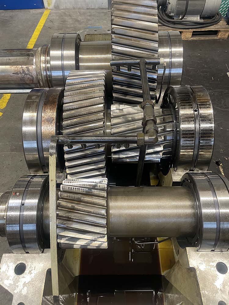 Vor Ort wurden Haupt- und Hilfsantrieb auf den Fundamenten montiert, präzise ausgerichtet und mit den Motoren gekuppelt. Nach Montage des Schmiersystems, Remontage der Schutzhauben sowie erfolgreichem Probelauf konnte die Anlage wieder in Betrieb genommen und die Baustelle abgeschlossen werden.