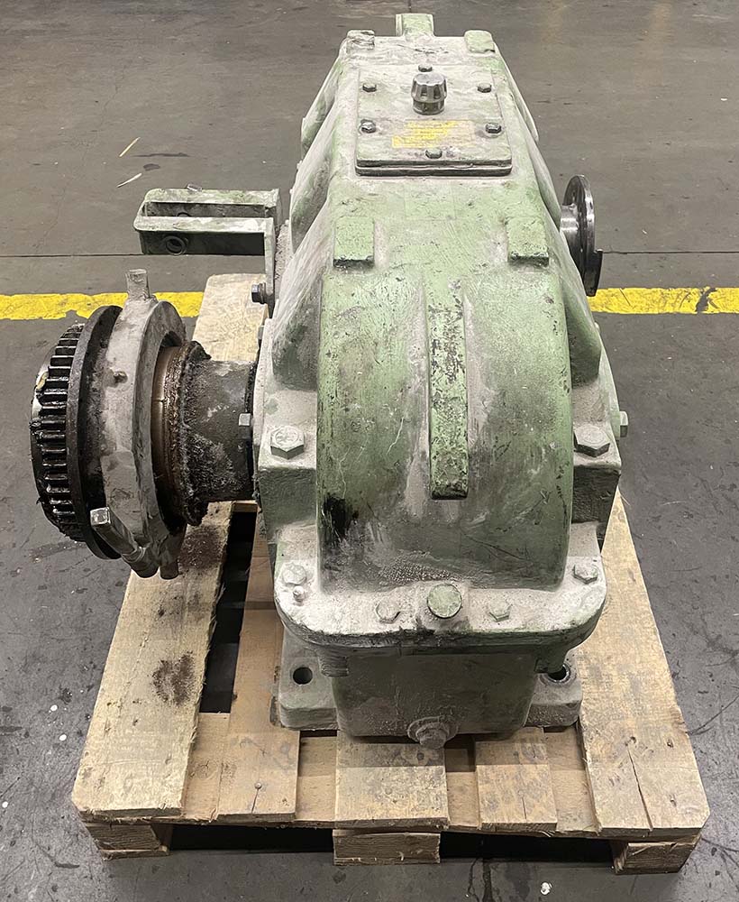 Das ausgebaute Altgetriebe des Hauptantriebs wurde im Werk vollständig demontiert, vermessen und dokumentiert. Nach Austausch aller relevanten Lager- und Dichtelemente erfolgten Montage, Prüf- und Konservierungslauf sowie die Reparaturlackierung. Anschließend wurde das instand gesetzte Getriebe an den Kunden ausgeliefert.