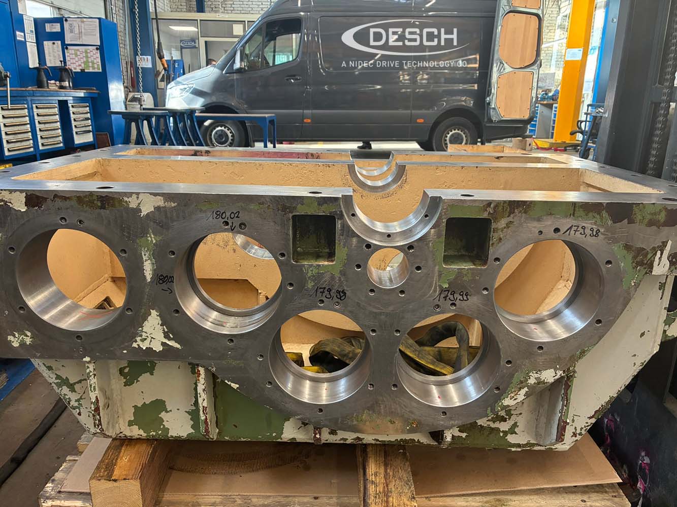 Due to high production capacity at our customer, Nidec DESCH was only given a limited amount of time for the repair. After the professional disassembly, cleaning, and inspection, excessive wear on some roller bearing seats in the gearbox housing was discovered during the measurement of all components. The reconditioning of these bearing seats threatened to delay the scheduled timeline.