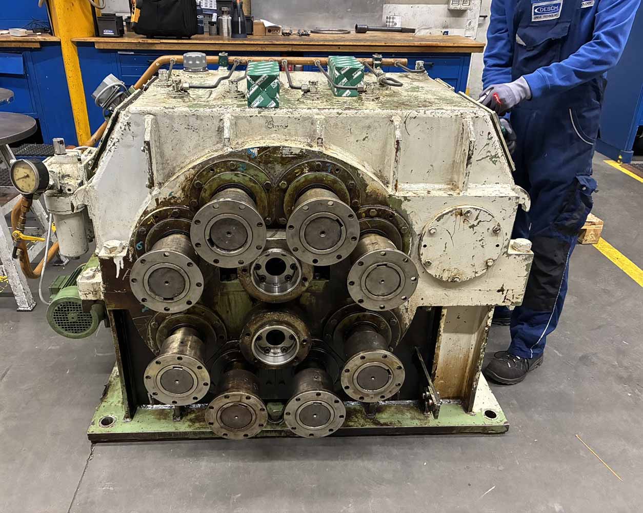 Nidec DESCH repaired a 260kW rolling mill gearbox for an internationally operating German manufacturer of cold-rolled steel strips and profiles. This gearbox is used in a 20-roll cold rolling mill.